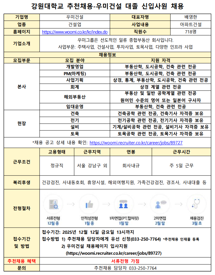 [공지] [취업] 우미그룹 추천채용 안내 (12/12 금요일 13시까지)